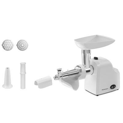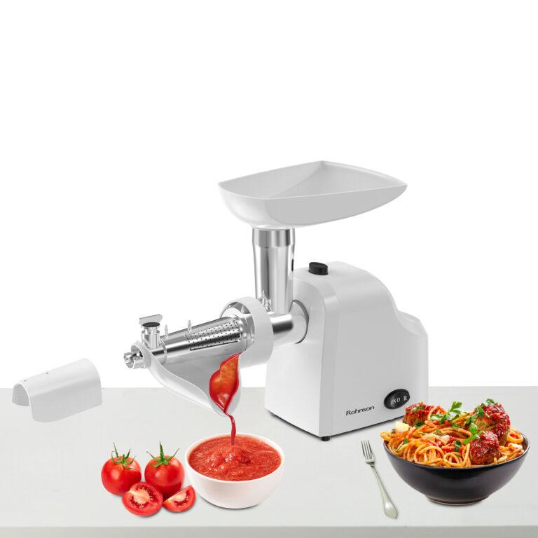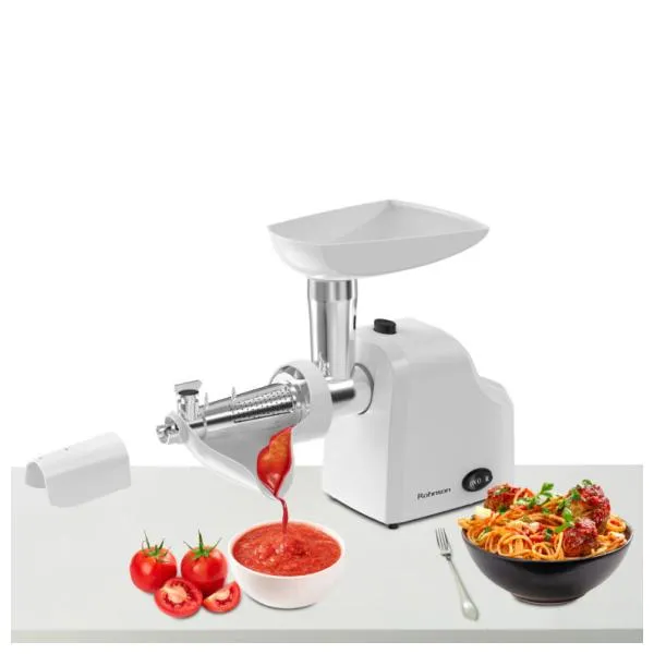 *** С изпращането на тази форма потвърждавате, че сте запознати и се съгласявате с Общите условия и Политиката за защита на личните данни на сайта.Rohnson R-5412 разполага с мощен 1000W мотор, който осигурява бърза и ефективна обработка дори на по-големи количества месо. Този многофункционален кухненски уред идва с приставка за доматено пюре, накрайници за приготвяне на колбаси и три метални диска, позволяващи фино, средно и едро смилане.